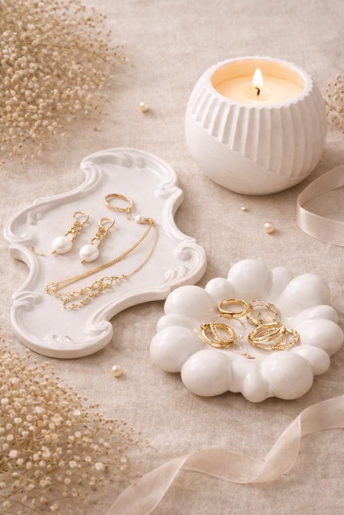 Pojemniki i podstawki z gipsu ceramicznego oraz polimerowego — elegancka oprawa światła i detalu.