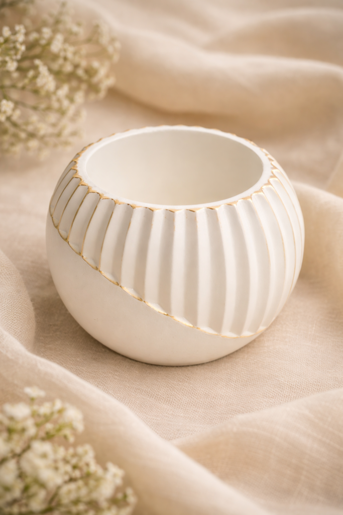 Pojemniki i podstawki wykonane z gipsu ceramicznego oraz polimerowego to ręcznie tworzone dekoracje ceramiczne, które łączą w sobie funkcjonalność i estetykę. Każda forma powstaje z dbałością o detal, fakturę oraz proporcje, dzięki czemu staje się wyjątkowym elementem wnętrza i elegancką oprawą światła.